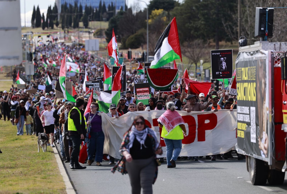 وقالت مجموعة (فلسطين أكشن) إن أكثر من 40 مظاهرة خرجت في أنحاء أستراليا مع مشاركة حشود كبيرة في عواصم ولايات مثل سيدني وبرزبين وملبورن.