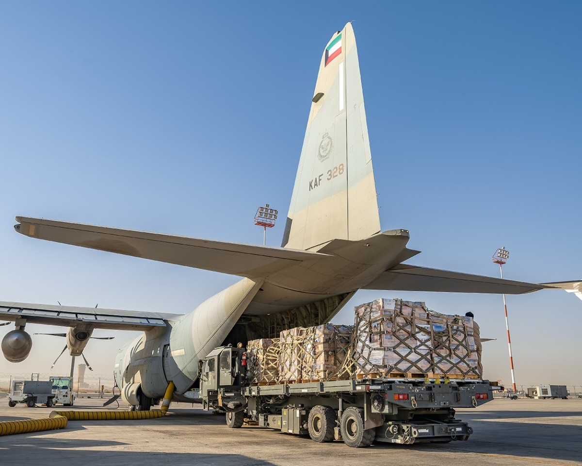 أقلعت الطائرة الإغاثية السابعة من الجسر الجوي الكويتي الثاني من قاعدة عبدالله المبارك الجوية صباح اليوم الثلاثاءK متجهة إلى مطار ماركا العسكري في الأردن محملة بعشرة أطنان من المساعدات الغذائية لإغاثة الأشقاء في قطاع غزة.