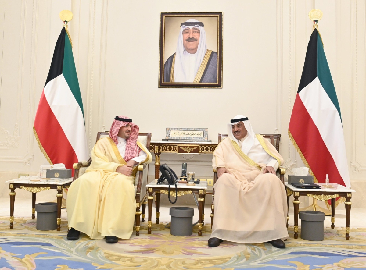 استقبل سمو ولي العهد الشيخ صباح خالد الحمد الصباح، بقصر بيان، صباح اليوم، النائب الأول لرئيس مجلس الوزراء وزير الداخلية الشيخ فهد يوسف سعود الصباح والأمير عبدالعزيز بن سعود بن نايف بن عبدالعزيز وزير الداخلية بالمملكة العربية السعودية الشقيقة وذلك بمناسبة زيارته للبلاد.