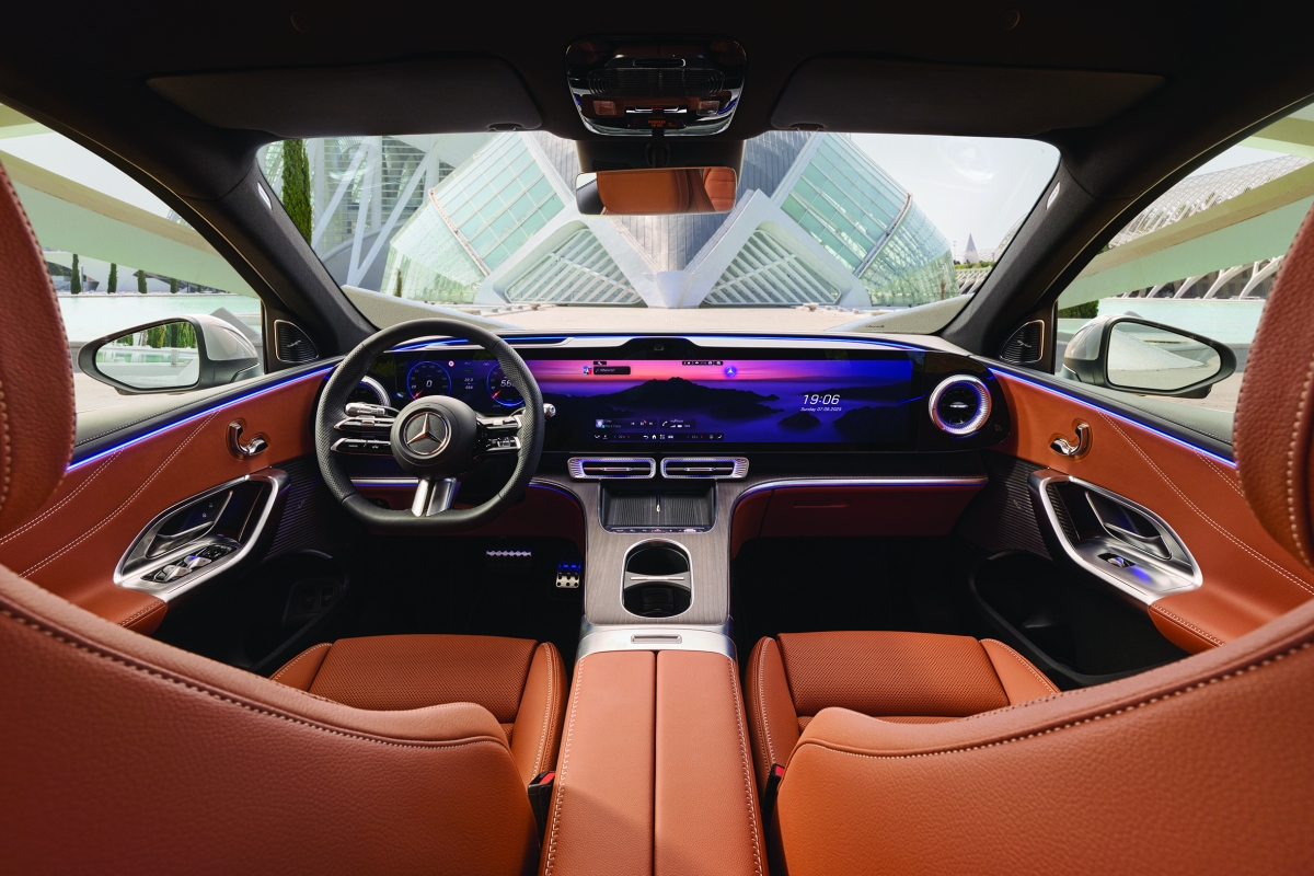 وفي الداخل، ترتقي «مرسيدس-بنز» بفلسفة التصميم القائمة على النقاء الحسي «Sensual Purity» إلى مستوى جديد. فالشاشة البانورامية «MBUX Hyperscreen» الجديدة كلياً، بتصميمها العائم السلس، تخلق تجربة رقمية مبهرة تنضح بالأناقة العصرية. وتضيف الإضاءة المحيطية النشطة لمسة مستقبلية لافتة. ومع المساحة الداخلية الرحبة، خصوصاً في الصف الخلفي، والسقف البانورامي القياسي، تبدو المقصورة مفتوحة وأنيقة.