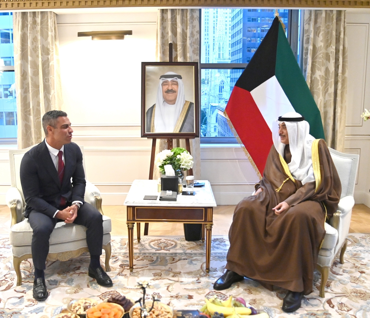 استقبل ممثل سمو أمير البلاد الشيخ مشعل الأحمد الجابر الصباح، سمو ولي العهد الشيخ صباح خالد الحمد الصباح، اليوم عمدة مدينة ميامي فرانسيس سواريز في مقر إقامة سموه بمدينة نيويورك في الولايات المتحدة الأميركية.