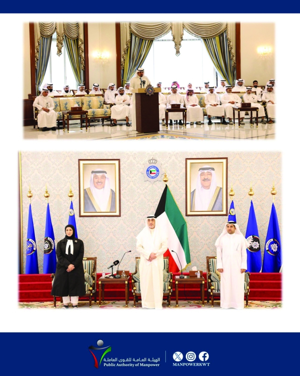 وأضاف «إن دوركم ليس مجرد وظيفة، بل رسالة نبيلة لحماية العدالة وتحقيق الاستقرار الاجتماعي والاقتصادي. فالتفتيش العادل والصادق يرسخ الثقة، ويضمن بيئة عمل آمنة ومنصفة للجميع. وأوصيكم بأن تكونوا قدوة في الانضباط والأمانة، وأن تجعلوا مصلحة الكويت وكرامة الإنسان هدفكم الأول، فأنتم خط الدفاع الأول عن الحقوق ومصدر الطمأنينة في بيئة العمل».