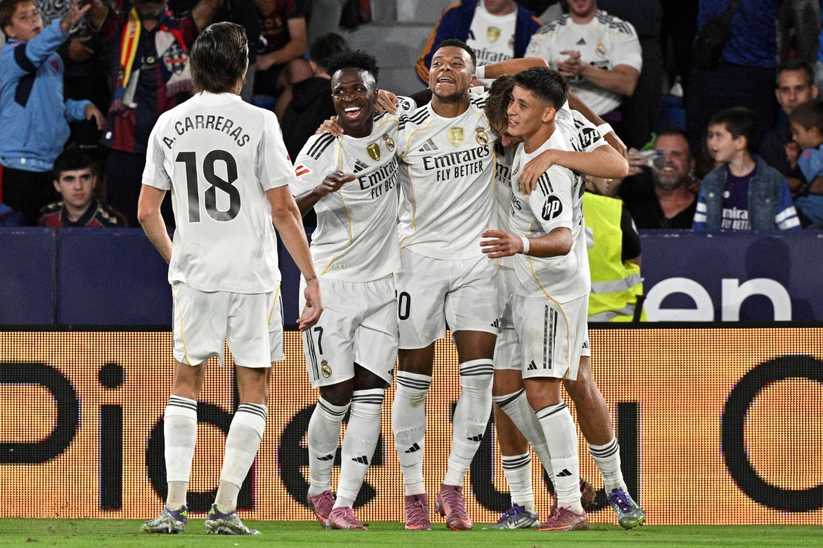تابع ريال مدريد، وصيف بطل الدوري الاسباني الموسم الماضي، بدايته المثالية بفوز سادس تواليا عندما تغلب على مضيفه ليفانتي 4-1 بفضل مهاجميه البرازيلي فينيسيوس جونيور والفرنسي كيليان مبابي أمس الثلاثاء في المرحلة السادسة من الدوري الإسباني لكرة القدم.