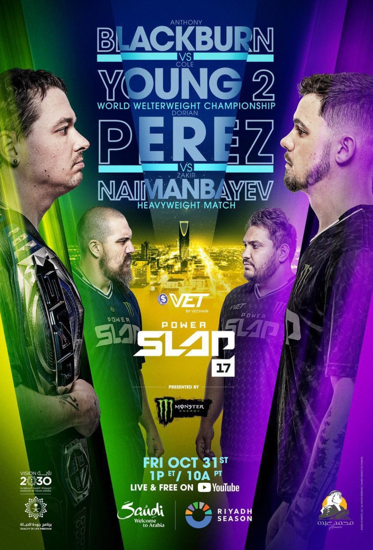 أعلن موسم الرياض عن استضافة منافسات POWER SLAP 17 بنسخته العالمية، برعاية MONSTER ENERGY، وذلك يوم الجمعة 31 أكتوبر على مسرح محمد عبده أرينا.