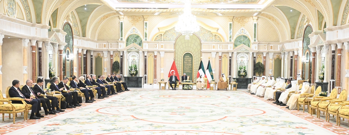 عقدت بقصر بيان ظهر اليوم جلسة المباحثات الرسمية بين دولة الكويت وجمهورية تركيا الصديقة ترأس خلالها سمو أمير البلاد الشيخ مشعل الأحمد الجابر الصباح الجانب الكويتي فيما ترأس الرئيس التركي رجب طيب أردوغان الجانب التركي وبحضور سمو ولي العهد الشيخ صباح خالد الحمد الصباح وسمو الشيخ أحمد عبدالله الأحمد الصباح رئيس مجلس الوزراء وعدد من كبار المسؤولين في البلدين.