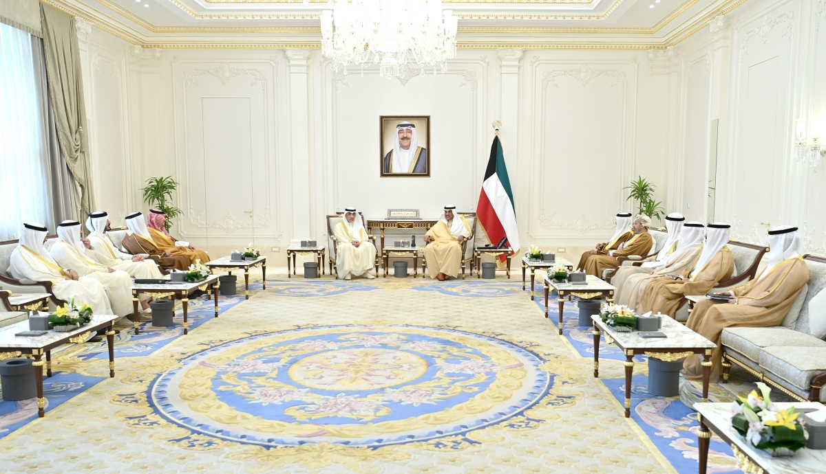 استقبل سمو ولي العهد الشيخ صباح الخالد في قصر بيان صباح اليوم النائب الأول لرئيس مجلس الوزراء ووزير الداخلية الشيخ فهد اليوسف، ووزير الداخلية في دولة الإمارات العربية المتحدة سمو الشيخ الفريق سيف بن زايد آل نهيان، ووزير الداخلية في مملكة البحرين الشيخ فريق أول راشد بن عبدالله آل خليفة، ووزير الداخلية في المملكة العربية السعودية صاحب السمو الملكي الأمير عبدالعزيز بن سعود بن نايف آل سعود، ووزير الداخلية في سلطنة عمان حمود بن فيصل بن سعيد البوسعيدي، ووزير الداخلية بدولة قطر الشيخ خليفة بن حمد بن خليفة آل ثاني والأمين العام لمجلس التعاون لدول الخليج العربية جاسم البديوي وذلك بمناسبة انعقاد الاجتماع الـ42 لوزراء الداخلية بدول مجلس التعاون لدول الخليج العربية بدولة الكويت.