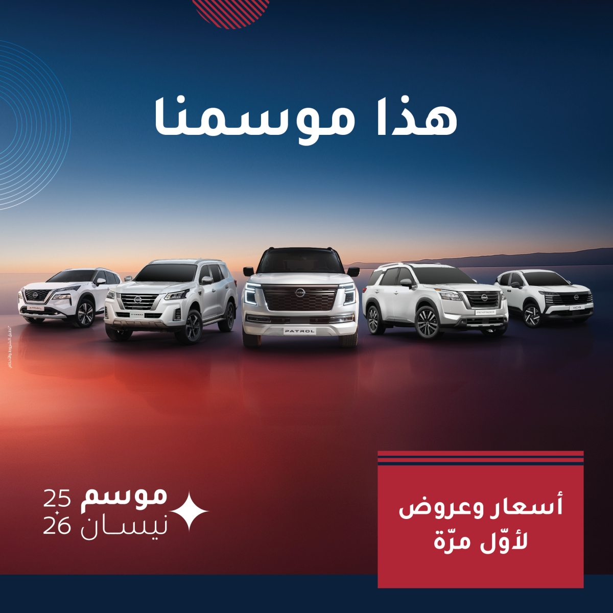 وفي هذا الموسم، تتكامل الفخامة مع الأداء، ويلتقي الشغف بروح التجديد في مزيج يعبّر عن جوهر فلسفة «نيسان» في تصميم سياراتها. فما يتم تقديمه يتجاوز فكرة العرض الترويجي، فهو رسالة التزام متجدّدة من نيسان البابطين لعملائها بأن رحلة التميّز مستمرة، وأن تجربة القيادة مع نيسان تبقى فريدة في طابعها ولا تشبه سواها، بما توفره من مزايا ابتكارية ومفاجآت متجددة تمتد عبر مجموعة واسعة من الطرازات، لتلبي تنوع الأذواق واحتياجات جميع العملاء.