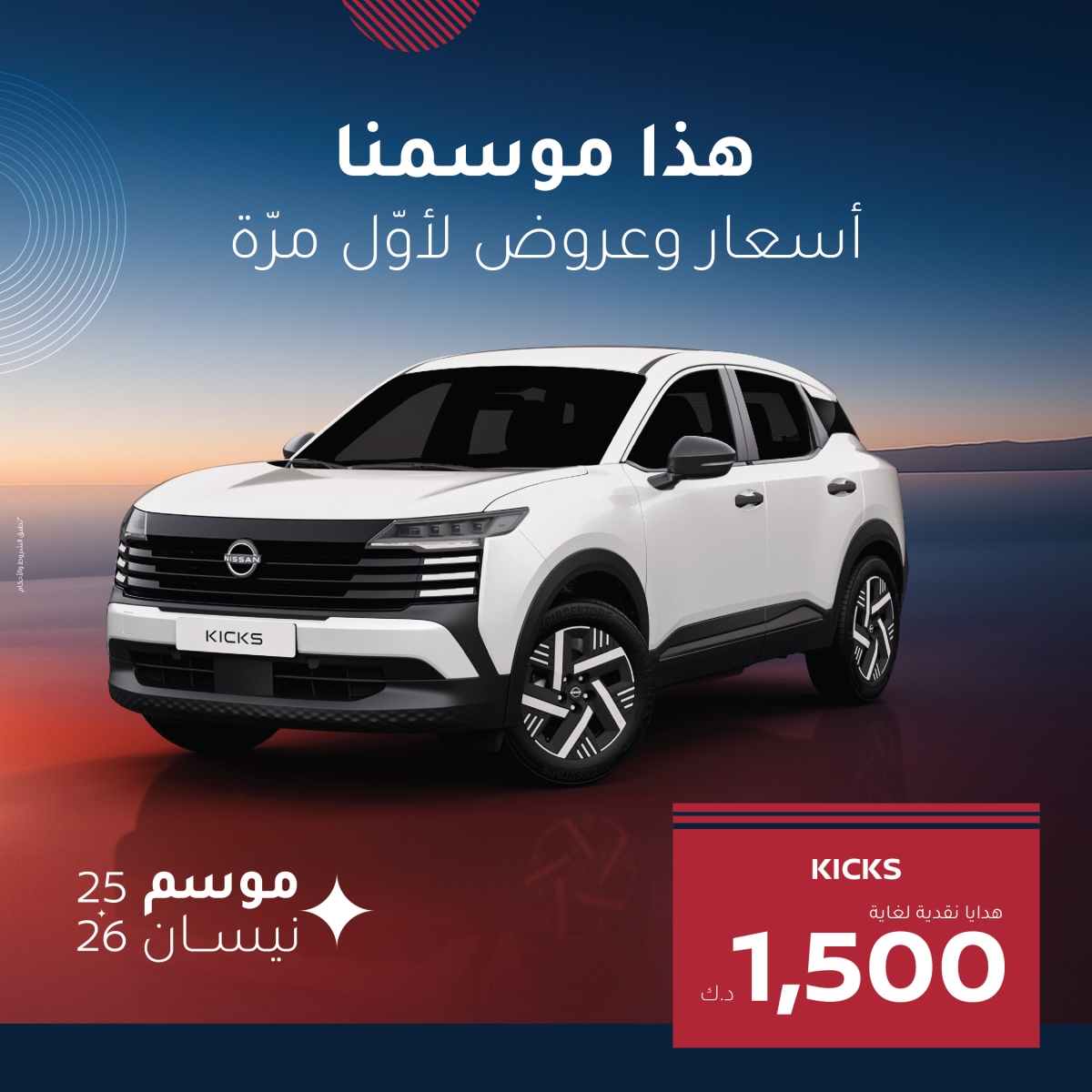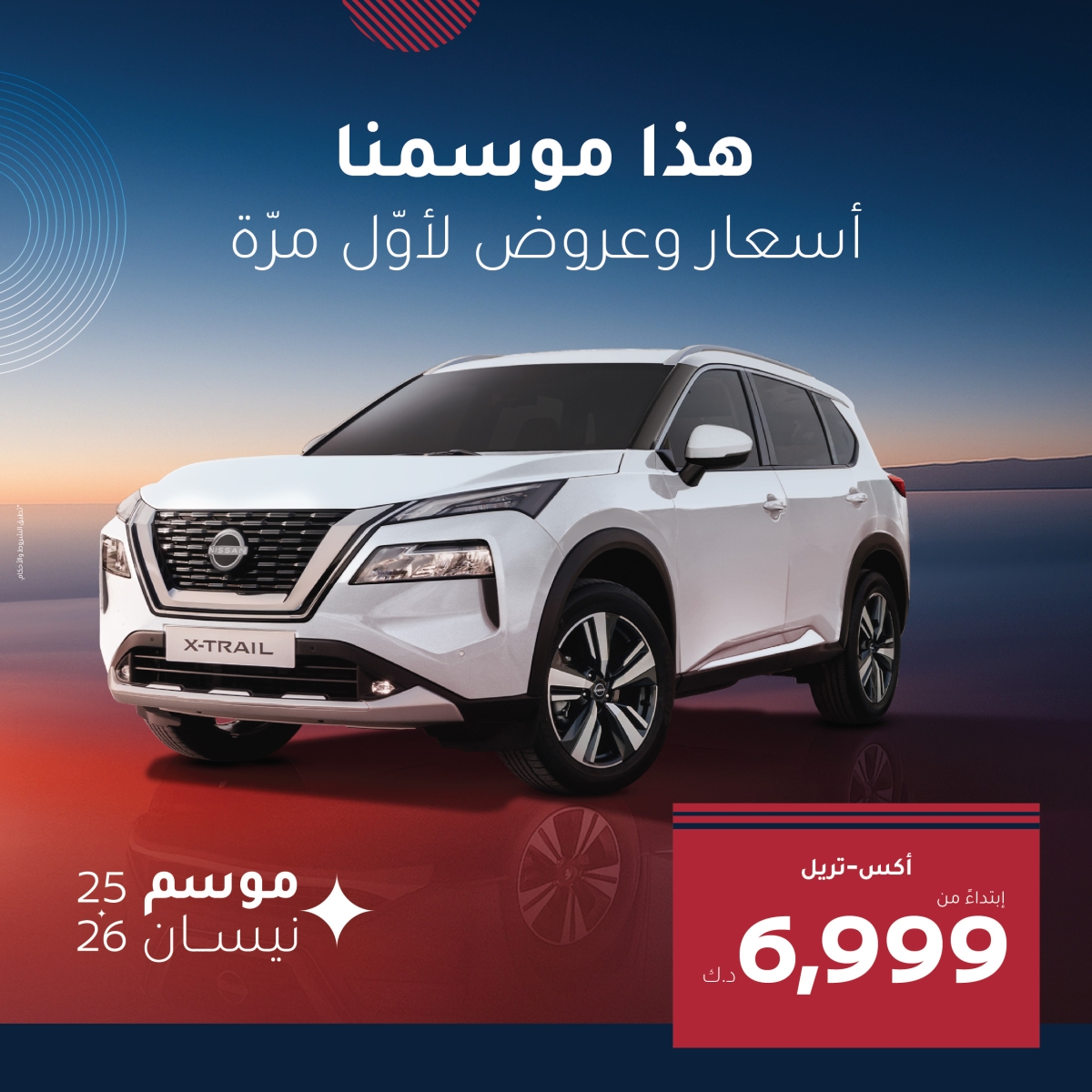 كما تبرز «نيسان أكس-تيرا» بتجربة قيادة تعيد تعريف المغامرة، فيما تأتي «نيسان Kicks» الجديدة كسيارة كروس أوفر ذكية مواكبة لتطلعات الشباب. ولا يكتمل المشهد من دون «نيسان Z» بروحها الرياضية التي تشعل شغف القيادة. وتأتي هذه العروض بأسعار استثنائية ضمن فئات مختارة بأسعار استثنائية وللمرة الأولى ابتداءً فقط من 6999 ديناراً.