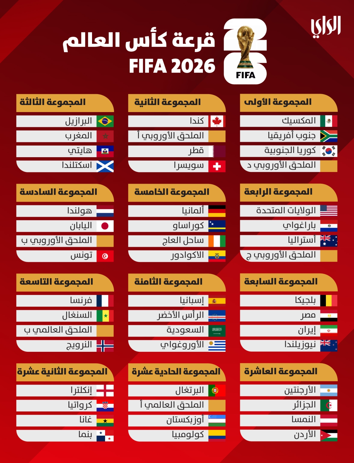 قرعة مونديال 2026... العرب في مجموعات صعبة