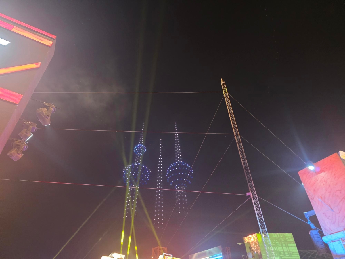 ازدانت سماء القرية العالمية في دبي، بعرض ليزر مشوق، يصور سمو أمير البلاد الشيخ مشعل الأحمد الجابر الصباح، وسمو رئيس دولة الإمارات الشقيقة الشيخ محمد بن زايد، إلى جانب أبرز معالم الكويت، وذلك ضمن فعاليات أسبوع «الإمارات والكويت.. أخوة للأبد».