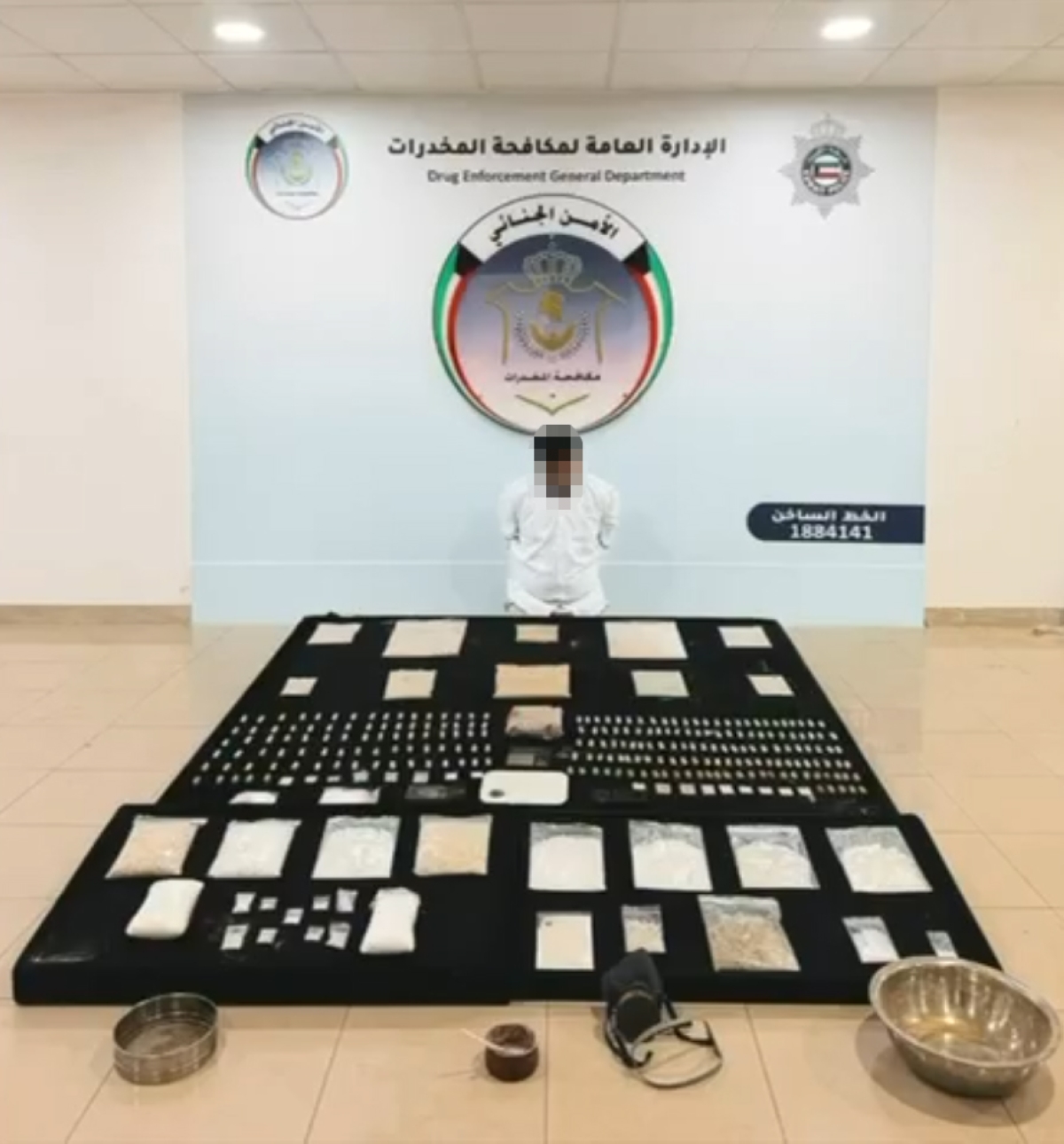 وتمكنت الفرق المختصة من ضبط المتهم، وهو من الجنسية الآسيوية، يدير نشاطا إجراميا منظما في مجال تهريب وترويج المواد المخدرة، حيث كشفت التحريات أنه يتلقى تعليماته من شريكه، أحد كبار تجار المخدرات خارج البلاد، والذي تم التعميم عليه دوليا، وعُثر بحوزة المتهم على (6) كيلوغرامات من مادة الهيروين النقي و(4) كيلوغرامات من مادة الشبو، كانت معدّة للترويج داخل البلاد.