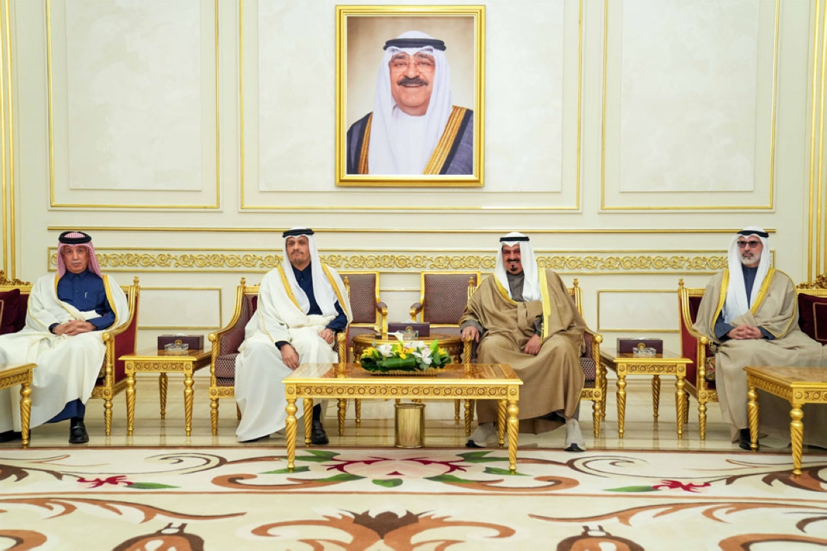 وكان في مقدمة مستقبليه على أرض مطار الكويت الدولي رئيس مجلس الوزراء سمو الشيخ أحمد عبدالله الأحمد الصباح، ورئيس ديوان رئيس مجلس الوزراء عبدالعزيز دخيل الدخيل، ووزير الخارجية الشيخ جراح جابر الأحمد الصباح، ونائب وزير الخارجية بالتكليف السفير عزيز رحيم الديحاني، ومساعد وزير الخارجية لشؤون مجلس التعاون لدول الخليج العربية السفير نجيب عبدالرحمن البدر، وسفير دولة قطر لدى دولة الكويت علي بن عبدالله آل محمود وكبار المسؤولين في الدولة.