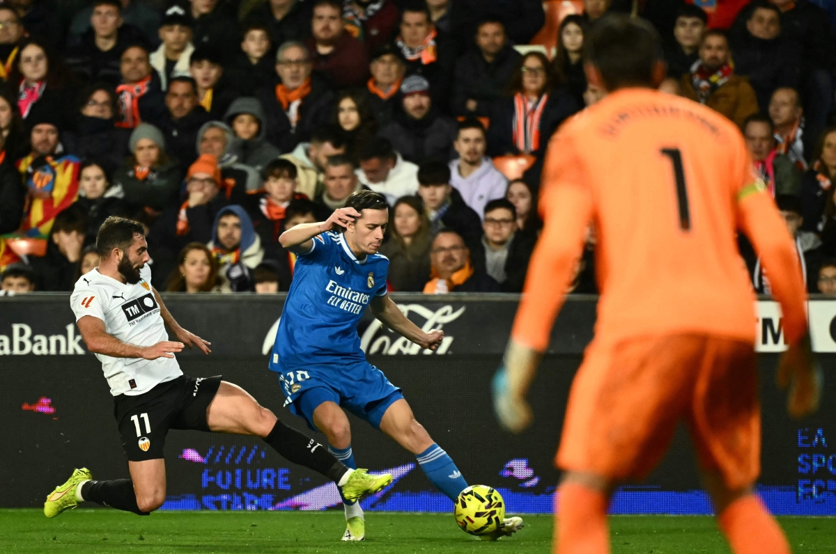 حافظ ريال مدريد على فارق نقطة واحدة مع برشلونة متصدر دوري الدرجة الأولى الإسباني لكرة القدم، بفوزه 2-صفر على مضيفه فالنسيا أمس الأحد، بعد أن حسم هدفا ألفارو كاريراس وكيليان مبابي في الشوط الثاني النقاط الثلاث في لقاء لم يشهد الكثير من الأحداث.