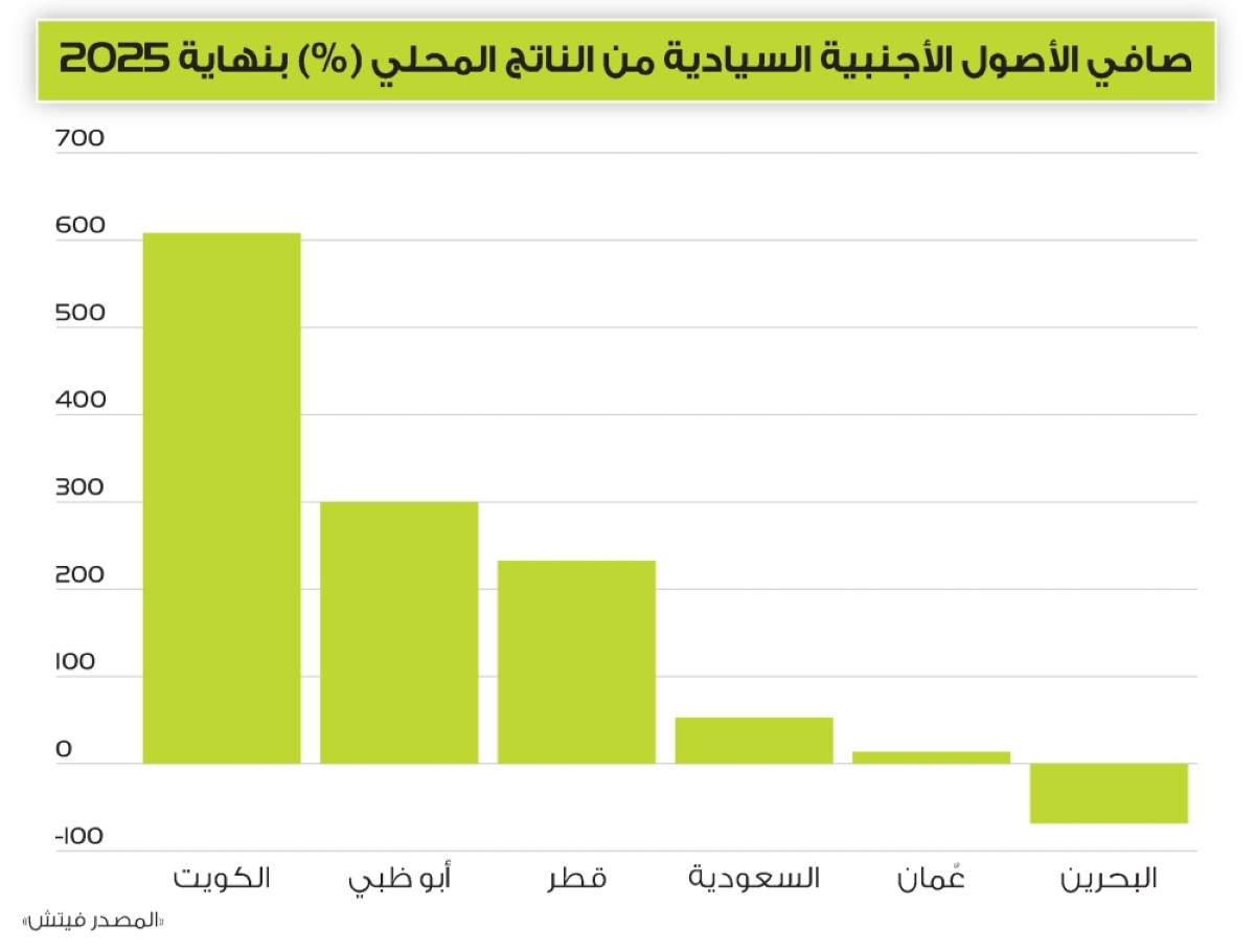 ولفتت «فيتش» إلى أن الكويت تتمتع بأقوى ميزانية عمومية بين دول المنطقة، ولديها مركز مالي استثنائي يعزز قدرتها على مواجهة الأزمات، حيث تنفرد بامتلاك أعلى صافي أصول أجنبية سيادية بين جميع الدول المصنفة لدى الوكالة، ما يعادل إنفاق 12 عاماً بناءً على مستويات الإنفاق عام 2025.