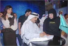 وبعد دردشة خاطفة مع الصحافيين أعرب فيها عن مدى سعادته بتلبية دعوة «زين للاتصالات» والتقاط الصور التذكارية مع عدد من موظفي الشركة، انطلق لمباشرة جولته بين أرجاء المعرض، فأحاطه مجموعة من المنظمين الذين استعين بهم لتأمين حمايته أثناء تنقله بين أقسام المعرض فضربوا طوقاً حوله على شكل دائرة، في محاولة لابعاد الجماهير الغفيرة عنه، الا أنهم لم يتمكنوا من أن يشكّلوا حاجزاً أمام أصواتهم التي رحبت به، كما لم يتمكنوا بطوقهم الدائري ان يمنعوا كاميراتهم من التقاط صور تذكارية له.