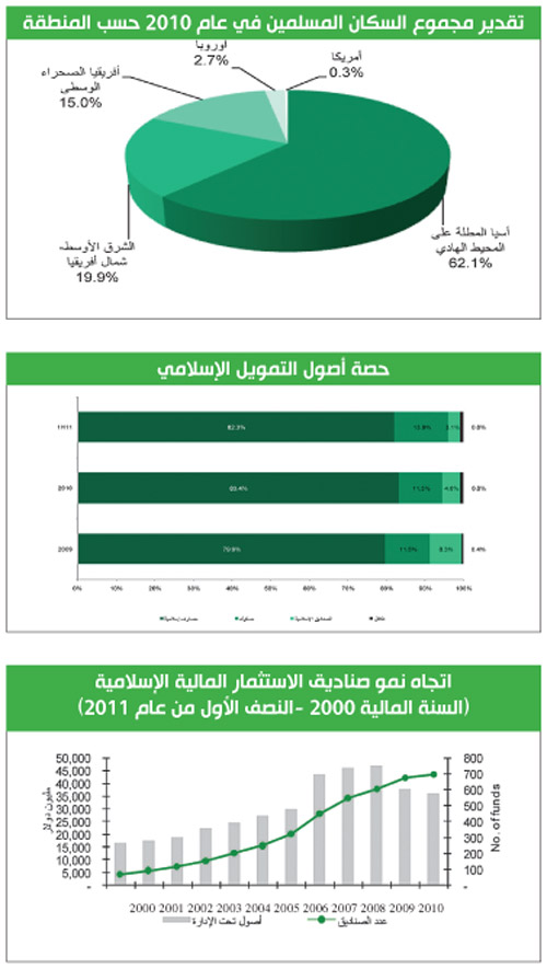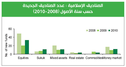 وأظهر التقرير أن صناعة صناديق الاستثمار الإسلامية حققت نموا ملحوظا في السنوات الأخيرة، حيث امتدت لأكثر من 75 بلدا مع ما مجموعه 608 صناديق وأصول مقدرة تحت الإدارة تبلغ قيمتها 74.5 مليار دولار بنهاية العام 2009، وتوسعت صناعة الصناديق الإسلامية بمعدل نمو سنوي متوسط قدره 20.4 في المئة بين عامي 2000 و2009. وارتفع إجمالي عدد الصناديق الاستثمارية الإسلامية في نهاية 2010 بنسبة 12 في المئة على أساس سنوي ليصل إلى 681 صندوقا، مما يعكس انتعاش السوق العالمية الشاملة بعد الأزمة المالية العالمية. واستمر العدد الإجمالي للصناديق الإسلامية في الزيادة في النصف الأول من 2011 بنسبة بلغت 2.6 في المئة خلال العام حتى تاريخه لتصل إلى ما مجموعه 699 صندوقا بمجموع أصول مقدرة تحت الإدارة بلغت قيمتها 36.3 مليار دولار. وتعد صناديق الأسهم من أكثر صناديق الاستثمار الإسلامية التي تحقق عوائد مجزية نظرا لتعافي العديد من أسواق الأسهم بالتزامن مع النمو الاقتصادي الإيجابي في جميع أنحاء العالم وقوة الرغبة لدى المستهلك وقطاع الأعمال.