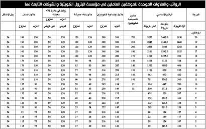 «الراي» تنشر جداول رواتب القياديين والعاملين في القطاع النفطي