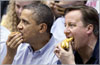 وتناول أوباما وكاميرون شطائر «هوت دوغ»، وتبادل الرئيس الحديث مع طلبة جلسوا على مقربة منه.