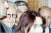 الابراهيمي لدى وصوله إلى مقر إقامته في أحد فنادق دمشق أمس (رويترز)