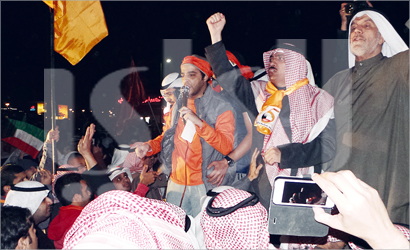 فضت القوات الخاصة تجمعاً حمل اسم «كرامة وطن - 7 » في الصباحية مساء امس كان في مقدم المشاركين فيه النائب السابق مسلم البراك (تصوير طارق عز الدين)