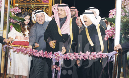 الشيخ جابر المبارك وجواد بوخمسين يقصان شريط الافتتاح ( تصوير زكريا عطية)
