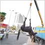 ... ومرفوعاً بكرين البلدية (تصوير كرم دياب)