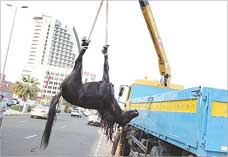 وأردف المصدر «ان رجال الامن الذين هرعوا الى المكان سارعوا باستدعاء رجال الاطفاء والبلدية لرفع الحصان النافق، وسُجل اثبات حالة في مخفر السالمية.
