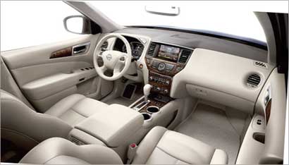 وتوفر تقنية (LATCH AND GLIDE( امكانية الحركة نحو الأمام والوصول الى الصف الثالث من المقاعد مع مقعد آمن للطفل (على جانب السائق). وتأتي هدوء المقصورة الداخلية في باثفايندر ومستوى راحتها المتقدم من خلال مجموعة كبيرة من المزايا المتوافرة ومنها ثلاثة صفوف من المقاعد المكسوة بالجلد الرائع والمقاعد الأمامية المهواة والمدفأة والمبردة والصف الثاني من المقاعد القابلة للانزلاق ونظام «بوز» الصوتي الفاخر بـ 12 سماعة.