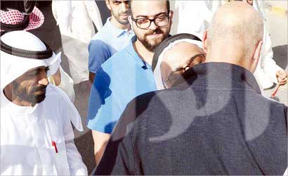 الديين وعبيد الوسمي يهنئان المفرج عنهم (تصوير طارق عز الدين)