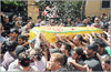 تشييع عنصر من «حزب الله» قتل في اشتباكات القصير في إحدى البلدات البقاعية أمس (أ ف ب)