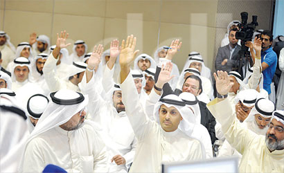 بدا هنا أن الامور حُسمت، فسار التصويت على بنود جدول اعمال الجمعية العمومية بسلاسة واضحة، حيث تم الانتقال بين بنود الاجتماع بموافقة الغالبية، باستثناء بعض التحفظات التي ظهرت في هذه الاثناء، وأحدها حول عدد أعضاء هيئة الفتوى والتشريع، إذ اقترح احد المساهمين تخفيض عددهم إلى 5 اعضاء بدلا من 7، لكن المدير العام للمجموعة عبد الرحمن زمان دافع بأن الالتزامات العديدة المترتبة على عقود «الامتياز» تجعل من الضروري أن يكون عدد اعضائها سبعة.