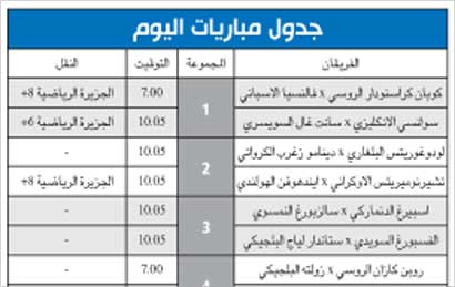 وفي المجموعة ذاتها، سيكون روبن كازان الروسي مرشحا لتحقيق فوزه الثاني حين يستضيف زولته وذلك بعد فوزه في مباراته الاولى خارج ملعبه على ماريبور 5-2.