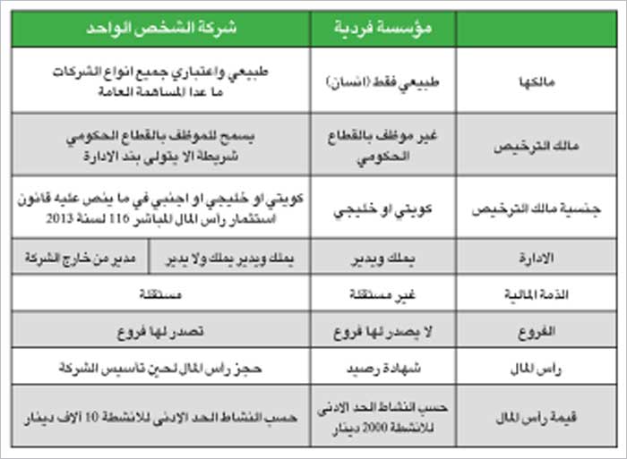 وبمقارنة بسيطة بين «المؤسسة الفردية» وشركة الشخص الواحد، حدد القانون ضوابط عدة للحصول على ترخيص لكل شركة.