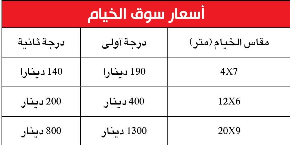 اما العاملون في مجال بيع وتصنيع وتركيب ونقل الخيام فهم اكدوا بدورهم ان السوق لم يشهد اي زبائن هذا العام على النحو المعروف عنه وتراجع الاقبال على الشراء فخلا السوق من الزبائن «إلا من رحم ربك» نتيجة لقرار البلدية بفرض رسوم وتأمين للمخيمات.