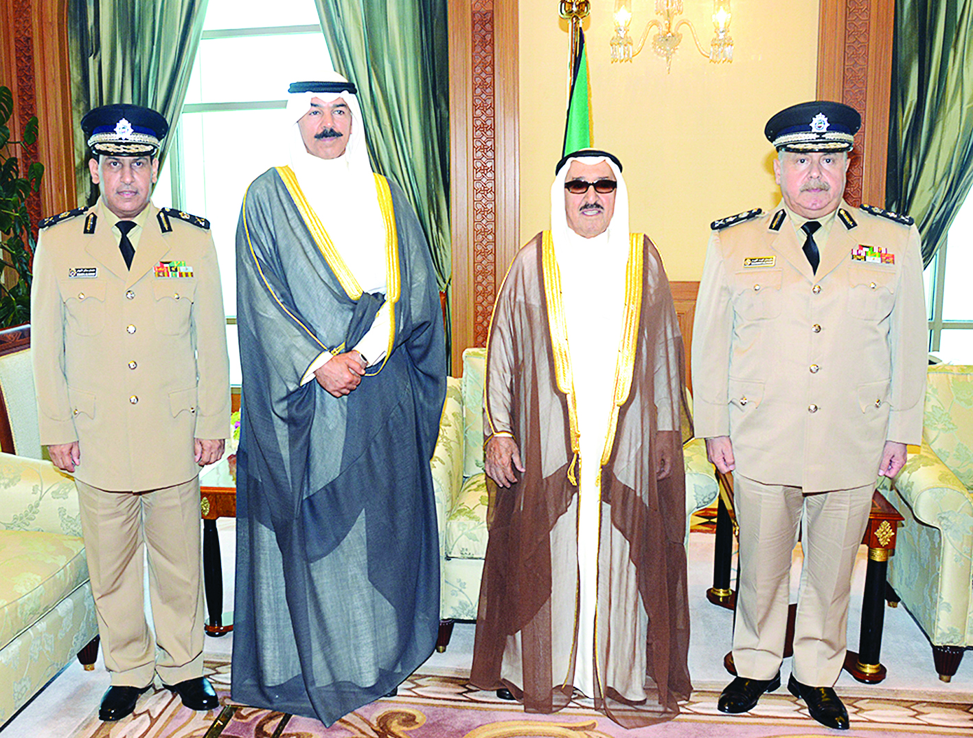 واستقبل صاحب السمو الأمير، نائب رئيس مجلس الوزراء وزير الداخلية الشيخ محمد الخالد، حيث منحه سموه وسام الكويت ذا الوشاح من الدرجة الاولى، ووكيل وزارة الداخلية الفريق سليمان الفهد، حيث منحه سموه وسام الكويت ذا الرصيعة من الدرجة الممتازة، ووكيل وزارة الداخلية المساعد لشؤون أمن الدولة اللواء عصام النهام، حيث منحه سموه وسام الكويت ذا الرصيعة من الدرجة الاولى، وذلك تقديرا لجهودهم المميزة في مجال عملهم لخدمة الوطن والحفاظ على استقرار و امن البلاد.