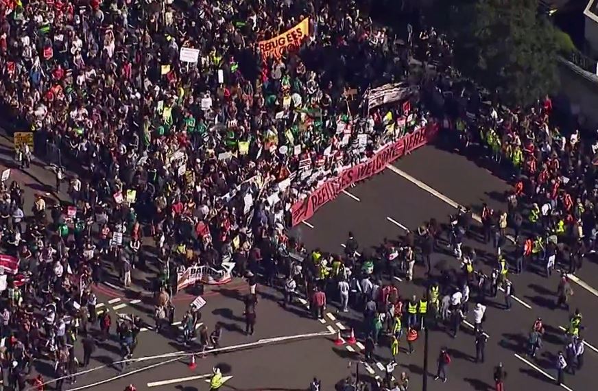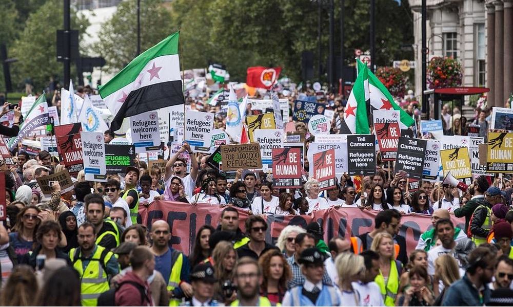 شارك عشرات الآلاف اليوم السبت في تظاهرة ضخمة في لندن مطالبين الحكومة بإقرار سياسة أكثر انفتاحا على اللاجئين بحسب ما نقلت فرانس برس.
