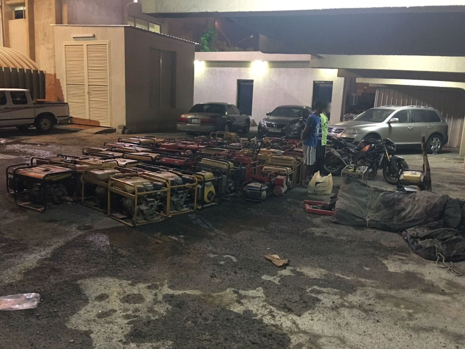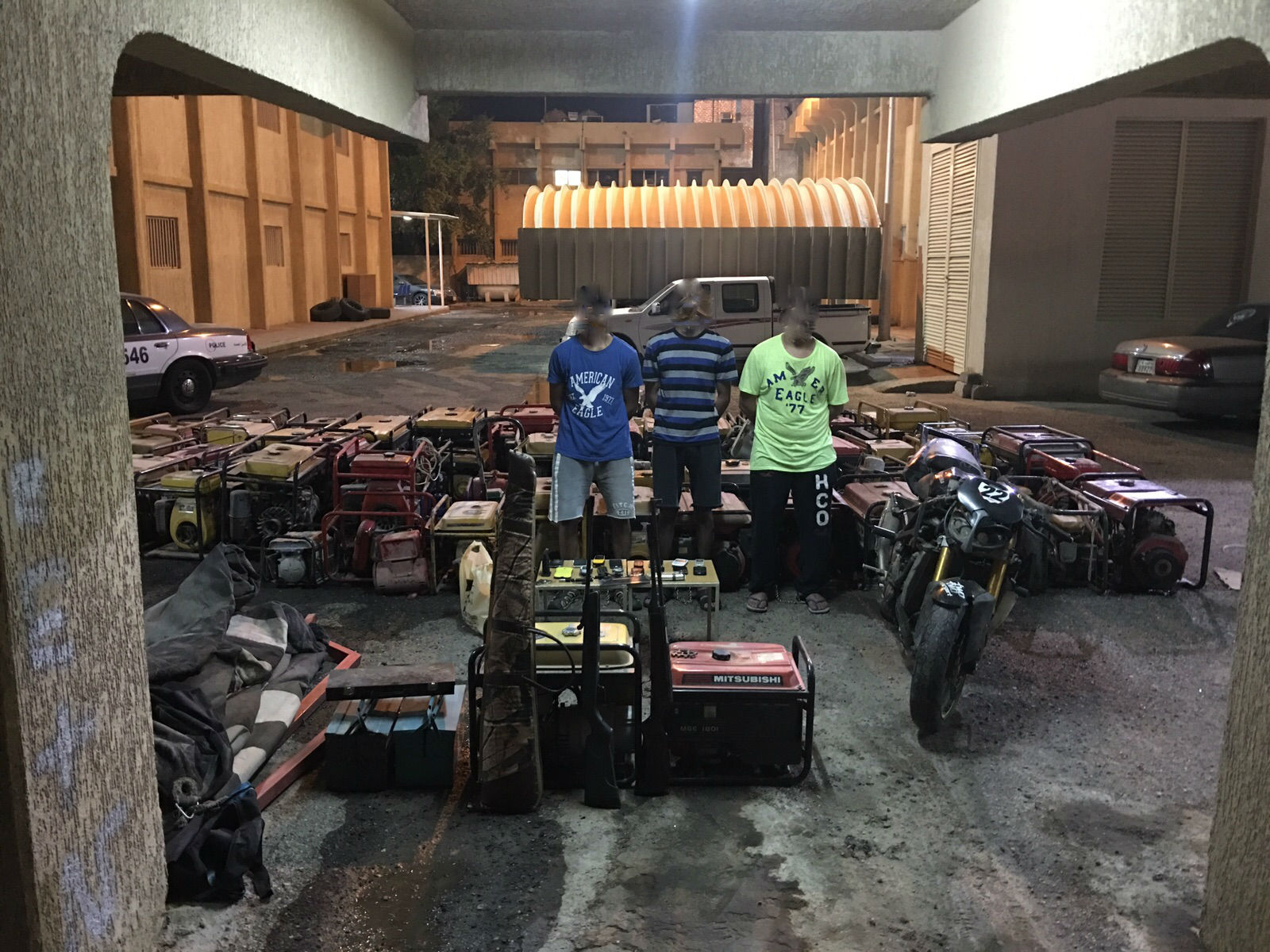 وتم تكليف أحد المتهمين للاتصال به وإبلاغه عن بيع مسروقات فوافق على شرائها وعند حضوره تم القبض عليه واعترف بوجود مخزن وعند تفتيشه عثر على كمية كبيرة من مولدات الكهرباء وجار إحالة المتهمين والمضبوطات إلى جهات الاختصاص.