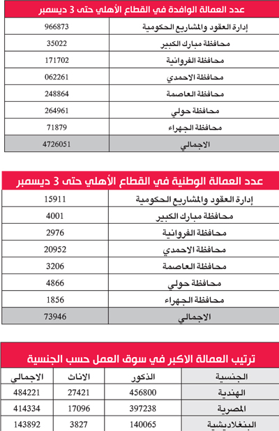 • العمالة الهندية الأكبر تليها المصرية فالبنغلاديشية