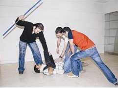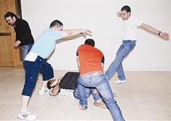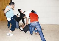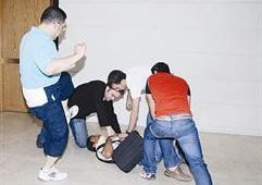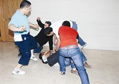ومضى ياسر قائلا «بعد اسعاف المجني عليه الذي تبين أن اسمه عدنان ويعمل محصلاً في شركة محلات المجوهرات والذهب توجهت إلى المخفر للإدلاء بشهادتي». انطلاقاً من تضييق الخناق على الجناة الثلاثة الذين استهدفوا الوافد عدنان، وانطلاقاً من ان يعم الأمن في الشارع طلبت «الراي» من عدنان وياسر القيام بدور تمثيلي لما حصل حتى يتقدم من كان شاهدا الواقعة الى المخفر للادلاء بشهادته في خطوة قد تقود للتعرف على المعتدين، وطلبت من ثلاثة من الزملاء لعب دور (المعتدين) حتى تنتعش ذاكرة من كان شاهد واقعة الاعتداء. ... والصور تبين كيف تعرض الجناة لعدنان واندفاعة ياسر في التصدي لهم ومهاجمتهم وابعادهم عنه واللحاق بهم
