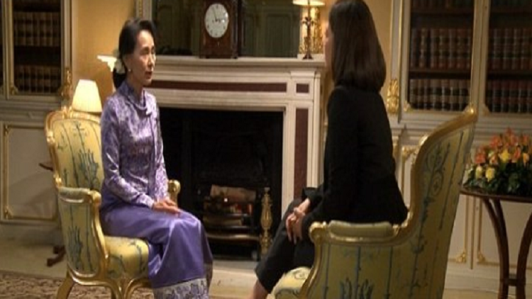 أثناء حوارها مع ميشال حسين، مذيعة تلفزيون هيئة الإذاعة البريطانية، فقدت «أونغ سان سو تشي» زعيمة الديموقراطية ببورما هدوءها، بعد أن سألتها ميشال عن العنف ضد الأقلية المسلمة.