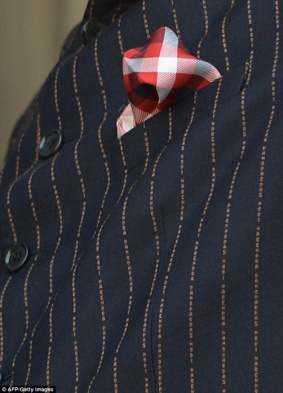 السبب وراء شهرة هذه البدلة هو السخرية والانتقاد اللذان انتشرا عبر الشبكات الاجتماعية في الهند عقب ظهور مودي بها، إذ اكتشف المواطنون أن اسمه نقش بحروف صغيرة بطول البدلة، وأظهر تكبير الصورة أن الخطوط الذهبية على الجاكيت ما هي إلا اسم رئيس الوزراء "Narendra Damodardas Modi"، وفقا لضحيفة ديلي ميل البريطانية.