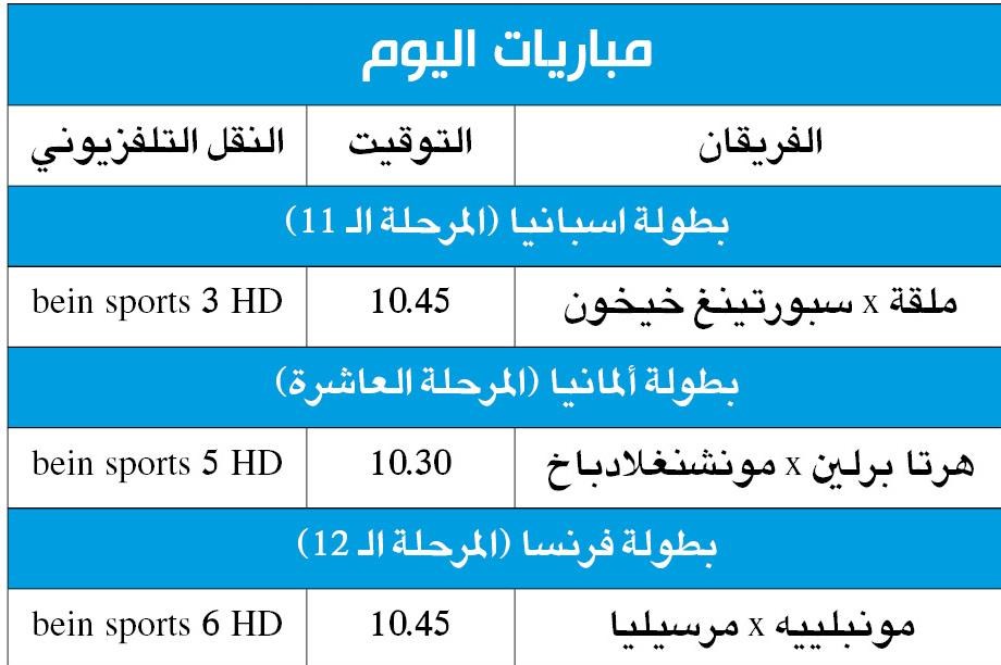ثلاث مباريات اليوم في الدوريات الأوروبية