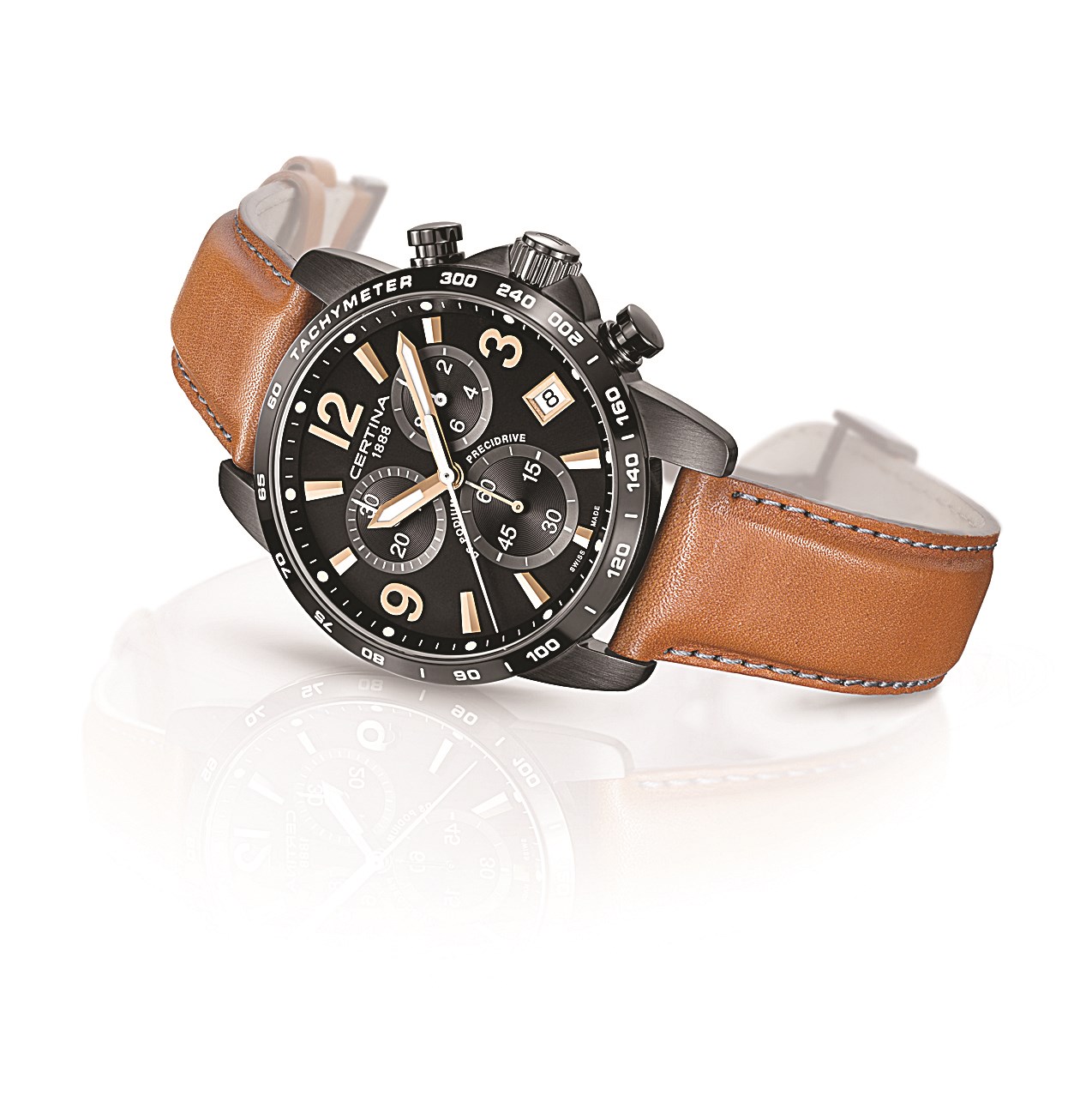 يعتبر الكرونوغراف «DS Podium» وجهاً معروفاً ومشهوراً في تشكيلة ساعات «CERTINA». تضيف آلية الحركة الكوارتز فائقة الدقة «PrecidriveTM» في الكرونوغراف الجديد «DS Podium» مزيدا من الدقة على الطراز مع تغييرات بسيطة لإبراز المزيد من القسمات الرياضية. أحدث ما في التشكيلة الموديل بجسم الساعة الأسود بالكامل المطلي بتقنية «PVD»، مع سوار جلدي بني وخياطة بلون الأنثراسيت الذي يحقق التباين مع السوار، ثم مزيد من التميز من خلال الأرقام الكبيرة التي لا تخطئها العين، وتفاصيل بلون الذهب الوردي المطلي بتقنية «PVD».