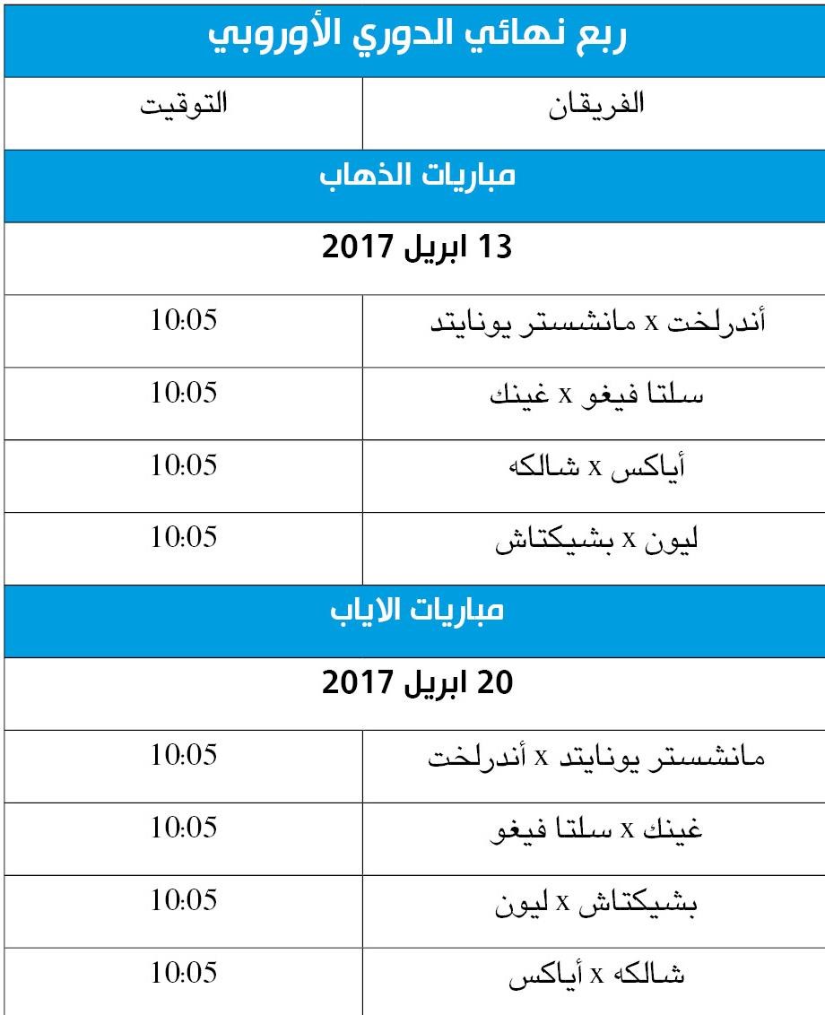 وتقام المباريات في 13 ابريل المقبل ذهابا، و20 منه إيابا.