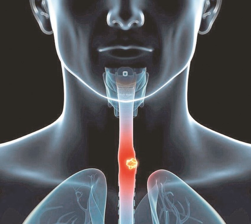 - وجود ورم سرطاني في المريء أو على مقربة من الحلق.